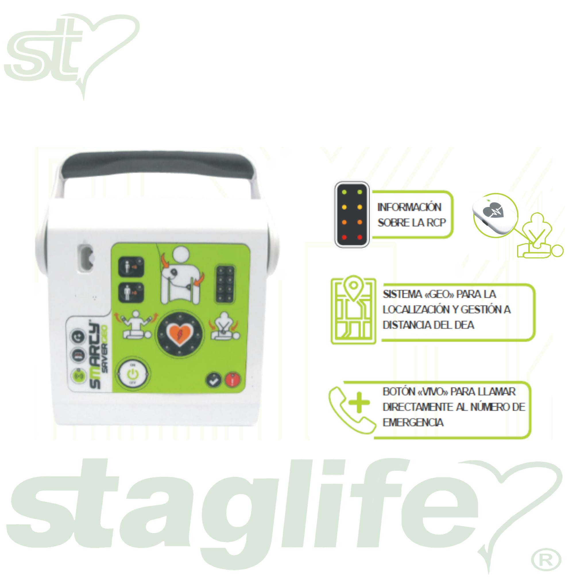 •Smarty Saver Geo: información en tiempo real sobre la calidad de la RCP+ Acceso a la plataforma Ami saver cloud para el control a distancia del DEA.